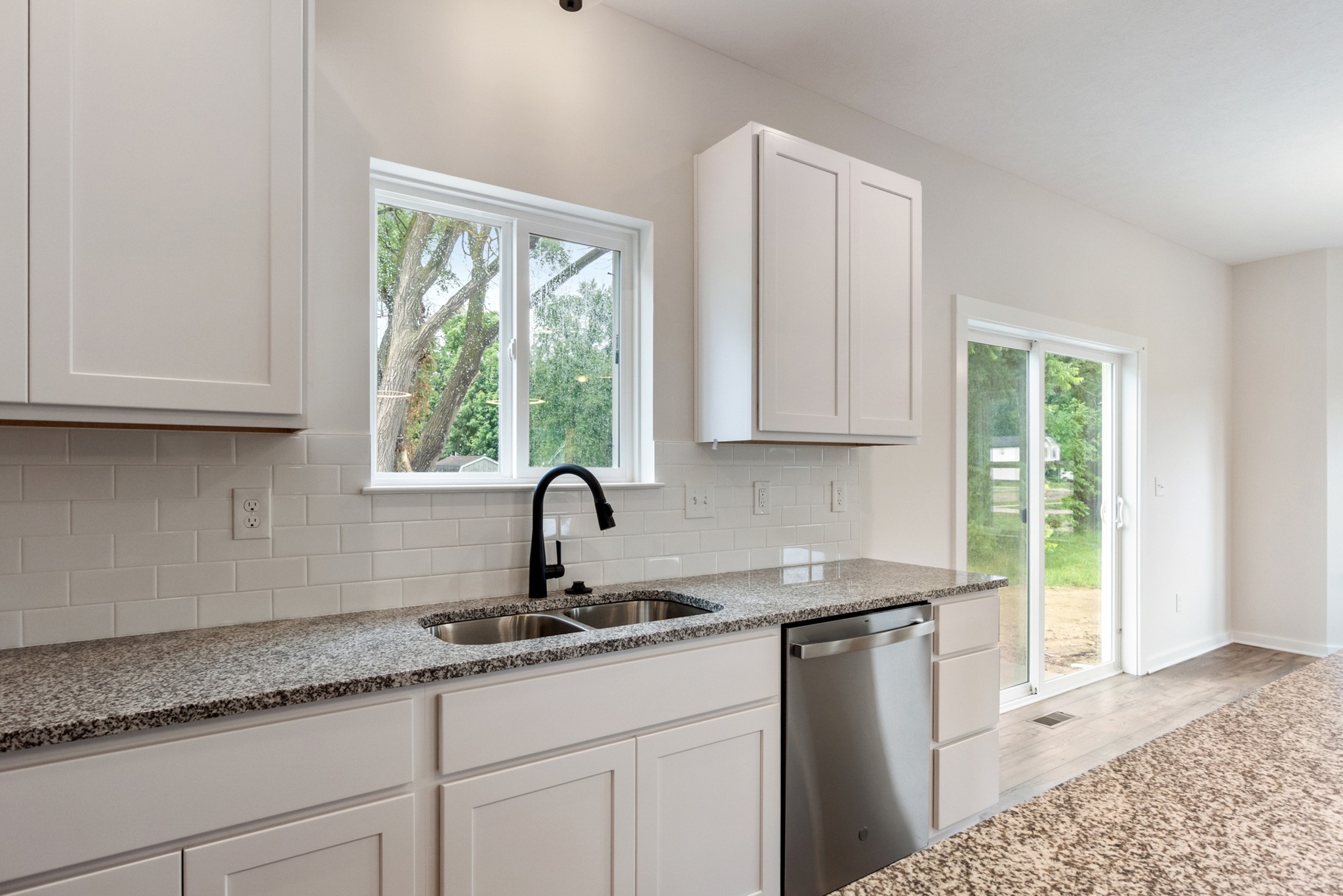 Modern elegance shines with matte black faucets and hardware, providing a sleek, cohesive look. The dining room with bay window fills the space with natural light, and a charming craftsman-style front door adds welcoming curb appeal.